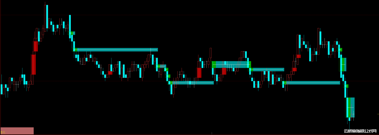 STICKLINE1(BARSLAST(LS&&REF(L,2)>REFX1(HHV(H,BARSLAST(LS)+1),10000))=BARSLAST(LS),REF(H,BARSLAST(LS)),REF(REF(L,2),BARSLAST(LS)),4,0),RGB(0,150,150);//空