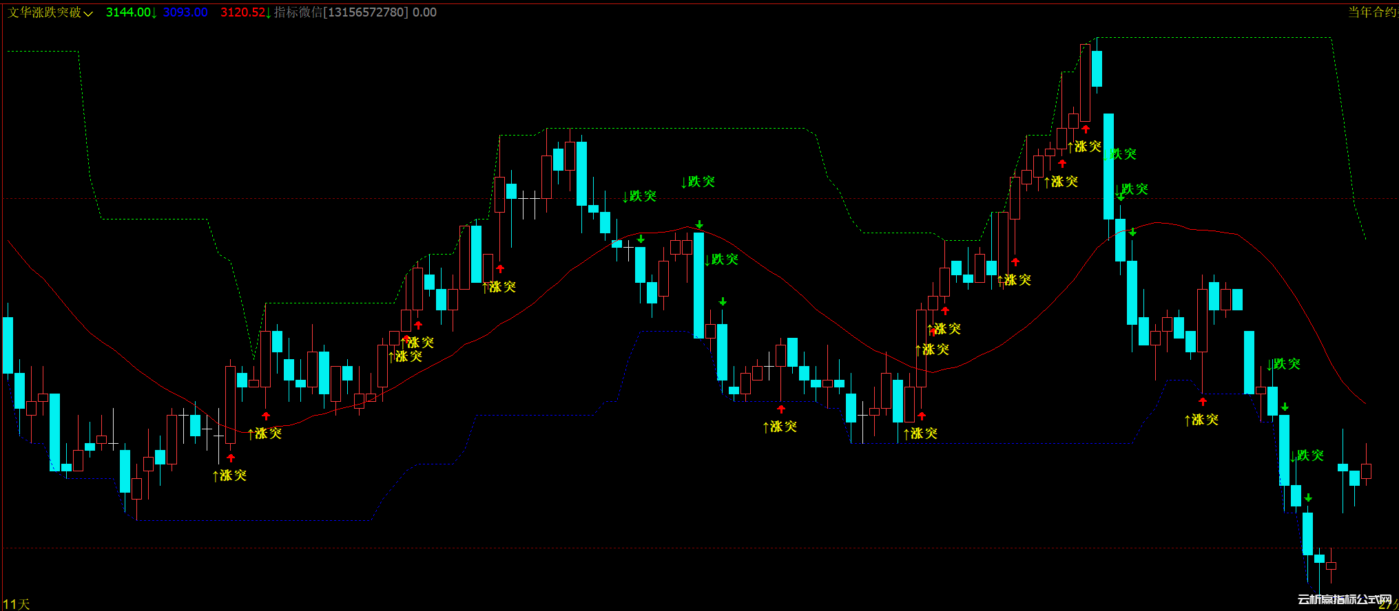 最大特色在于双重确认机制。看涨信号需满足:收盘突破前高、开盘价低于历史峰值、近期在峰值附近形成密集成交区。看跌信号同理反向。系统还会自动剔除布林带扩张期的无序波动,只保留收敛后的启动节点。