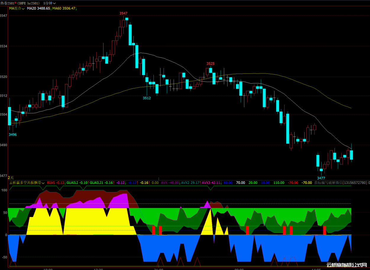 2、红色和绿色飘带转换,洋红色和深绿色是多空头行情加强表现