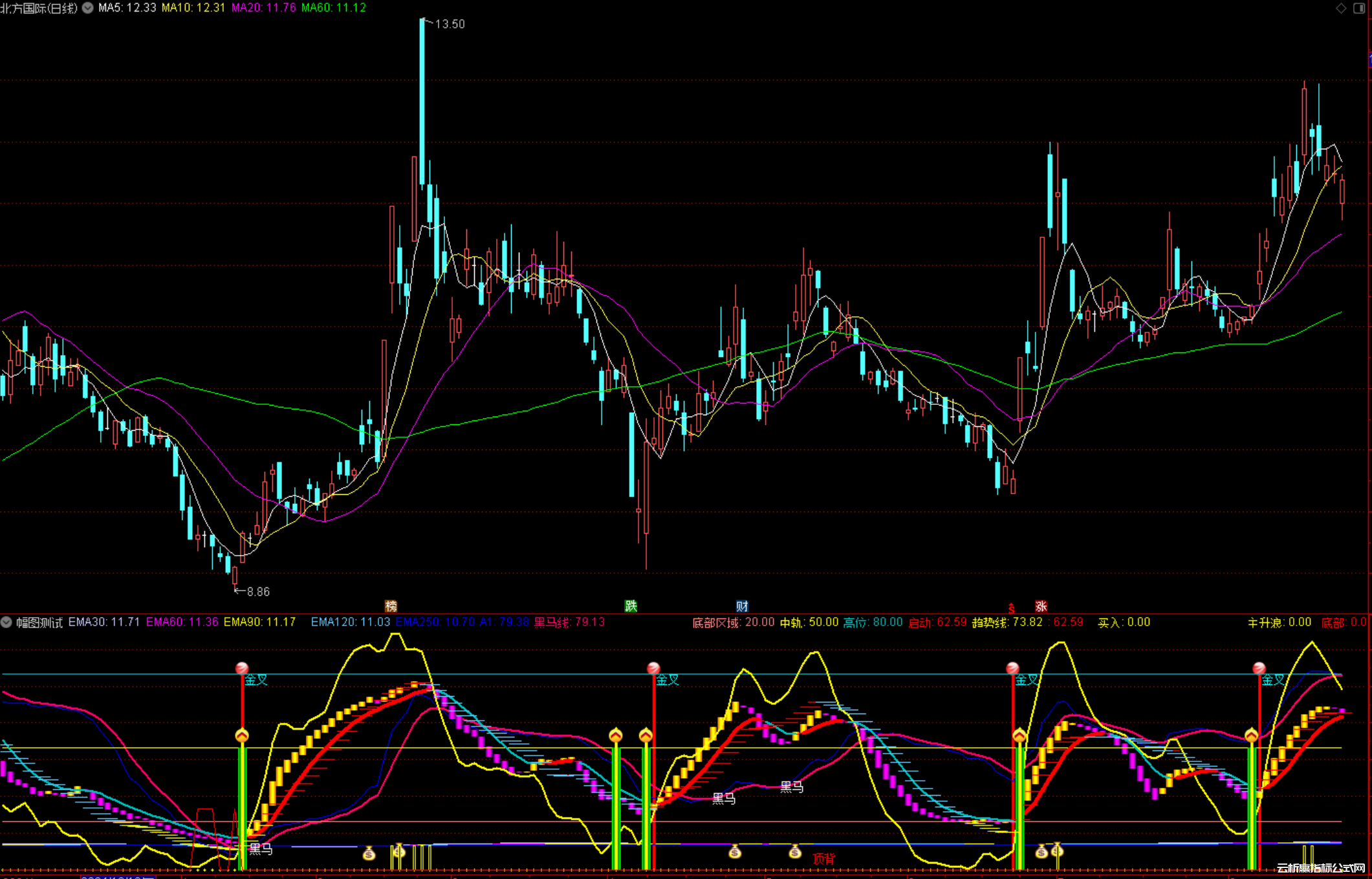 DRAWNUMBER_FIX(CURRBARSCOUNT=1,0.8,0.04,0,黑马抄底,COLORWHITE;