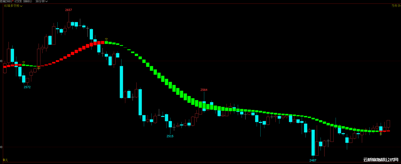 STICKLINE1(趋势线>顶,趋势线,顶,4,0),COLORGREEN;
