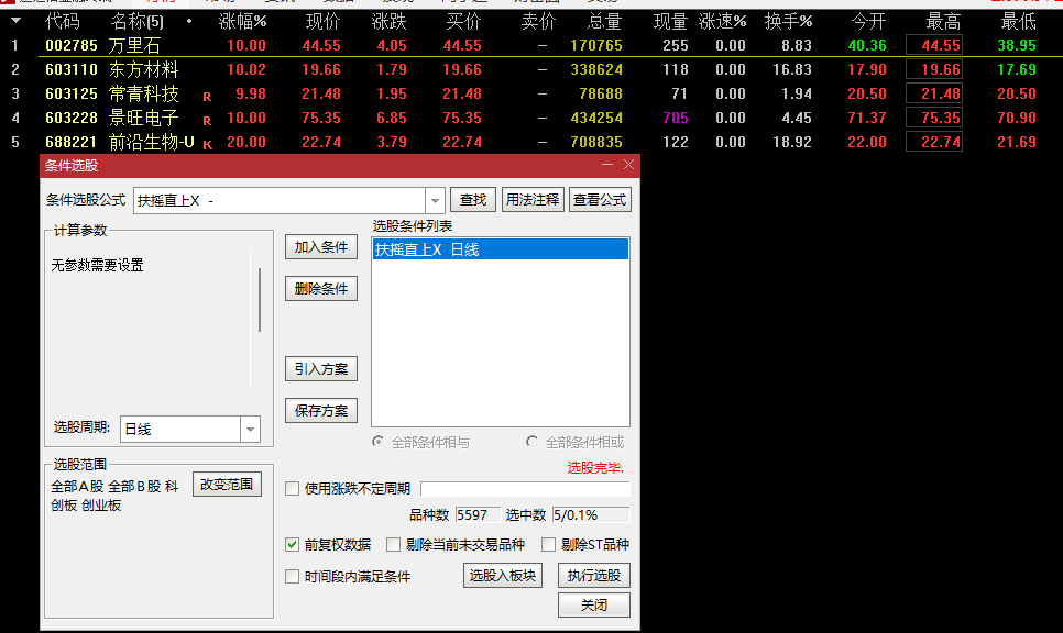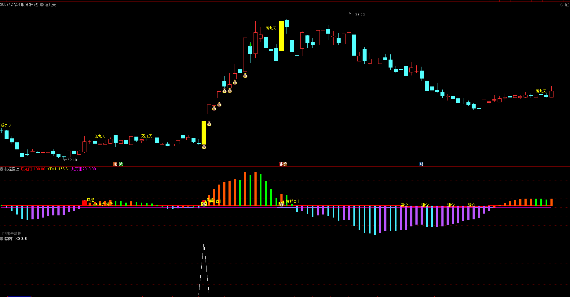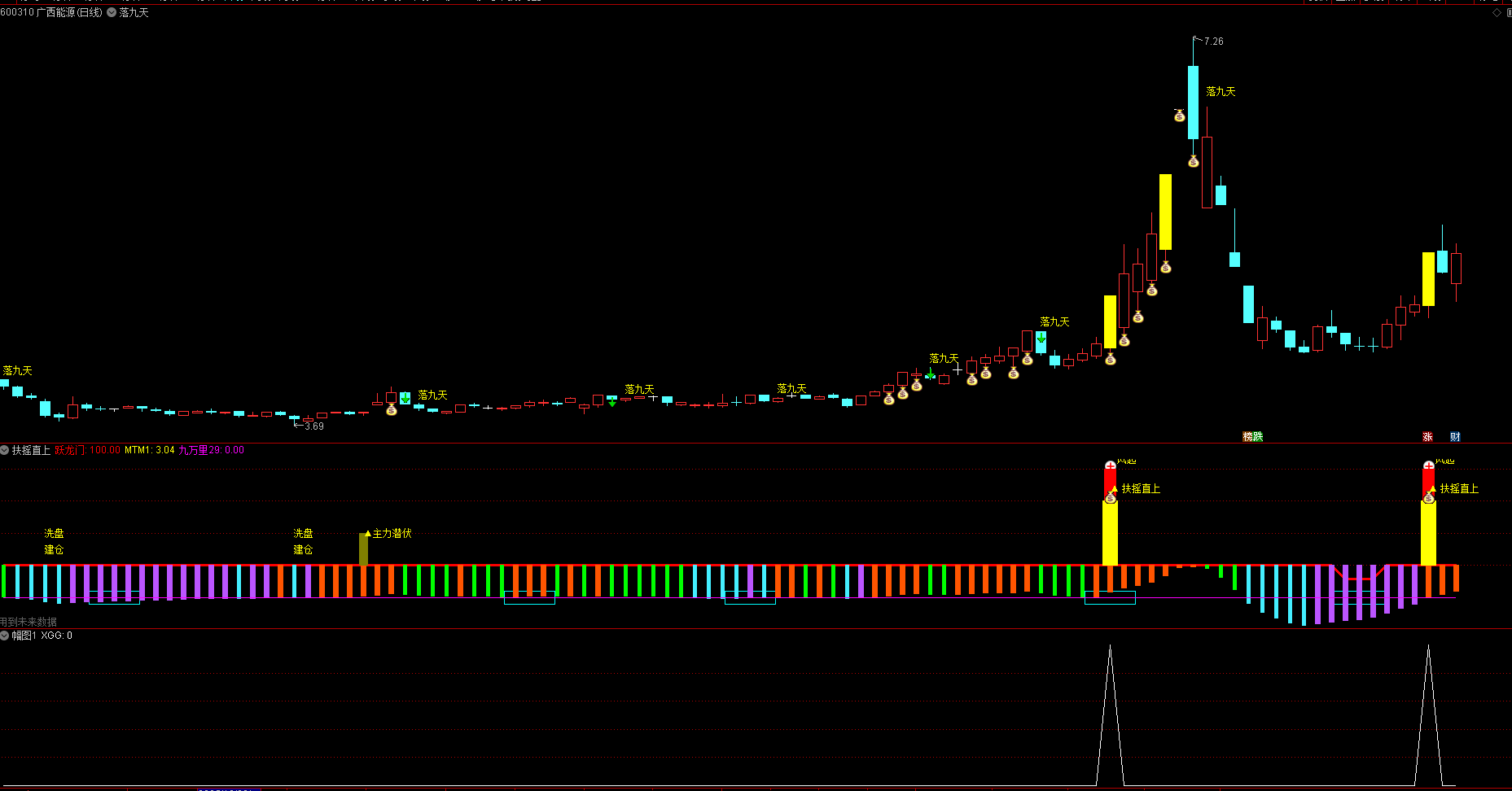 选信号:是主图的黄柱+幅图风起+幅图扶摇直上,主图幅图三个信号共振的时候选,注意:不保证一定选的到,不保证一定选的好,选的少。仅供学习参考!