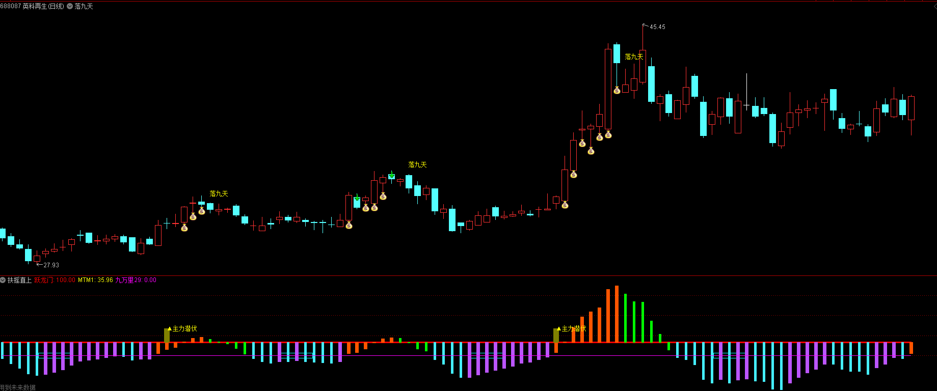 通达信《扶摇直上》主升落九天主图幅图指标公式: