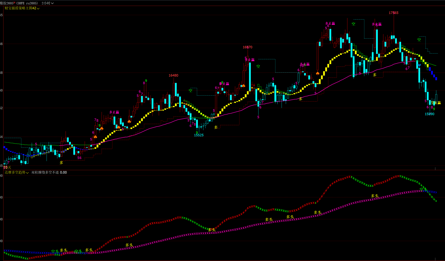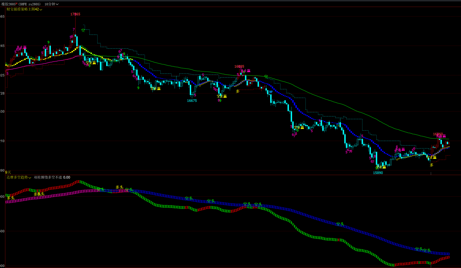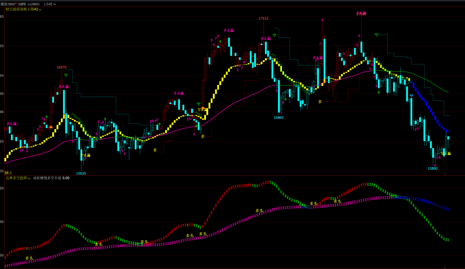 叠加空头和多头文字信号,当双柱缠绕重合的时候大概率是震荡,此时注意观察!