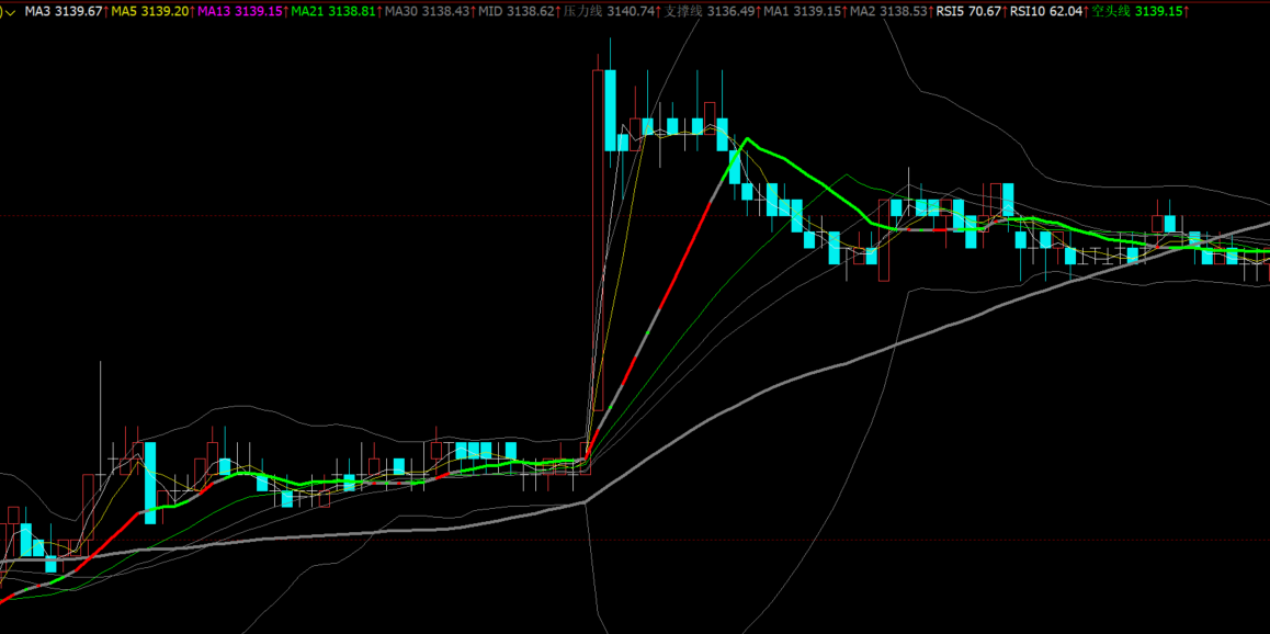 空头线:IF(趋势=-1,MA1,NULL),COLORGREEN,LINETHICK4;