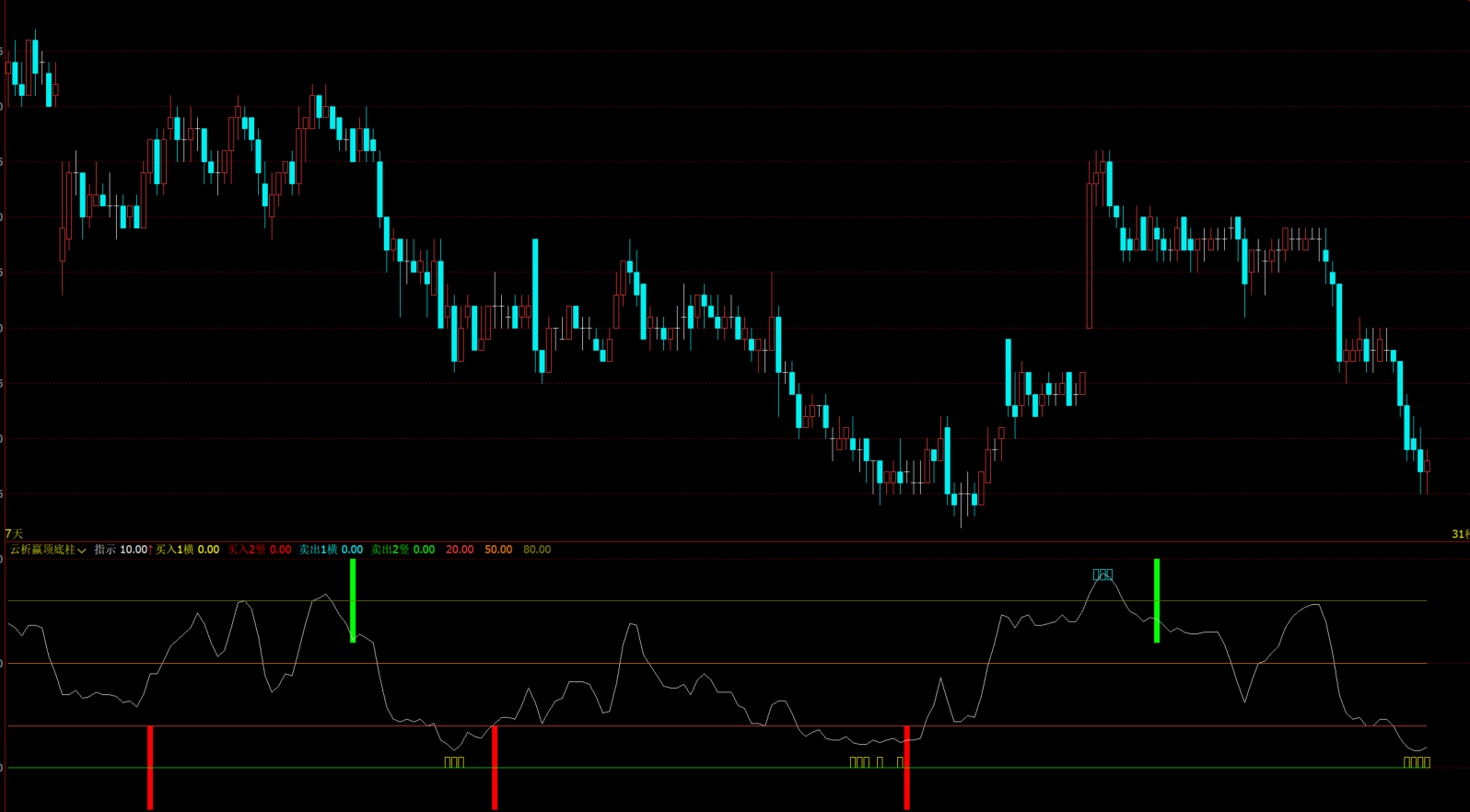 1、指标名称:云析赢顶底柱